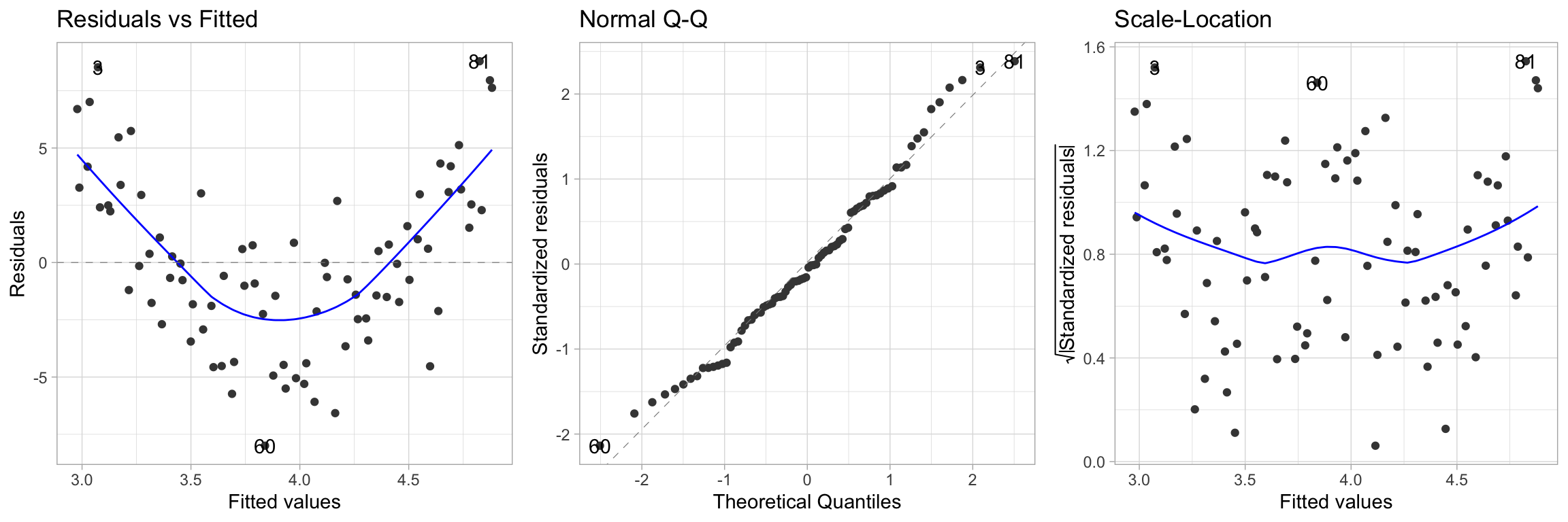 | Binomial | Logit | \(X\beta = \log\left(\frac{\mu}{1-\mu}\right)\) | \(\mu = \frac{\exp[X\beta]}{1+\exp[X\beta]}=\frac{1}{1+\exp[-X\beta]}\) | |