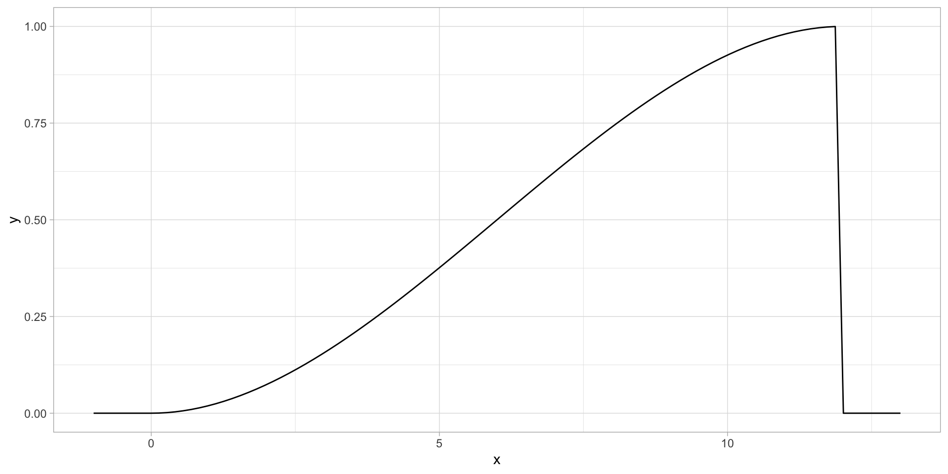 From this we get the MLE \(\hat\lambda = \frac{n}{\pi\sum y_i^2}\) or the ratio (number of plants observed)/(total area sampled).